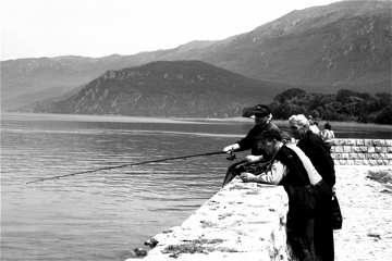 The Fishermen of Lake Ohrid. old men fish for the trout of lake ohrid.